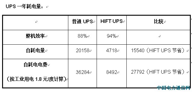 根据上述计算,采用HIFT UPS与普通UPS相比较,仅从电费这一项上来计算,