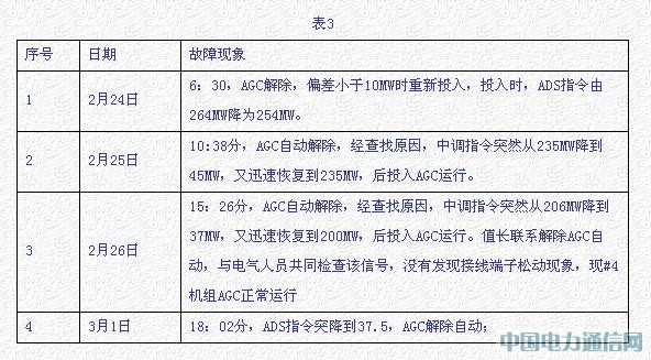 (2)ADS信号不稳定,无监视手段,目前,AGC经常解除,表现为ADS信号不稳定,机组负荷反映慢,表3是最近AGC运行统计情况表。要因。