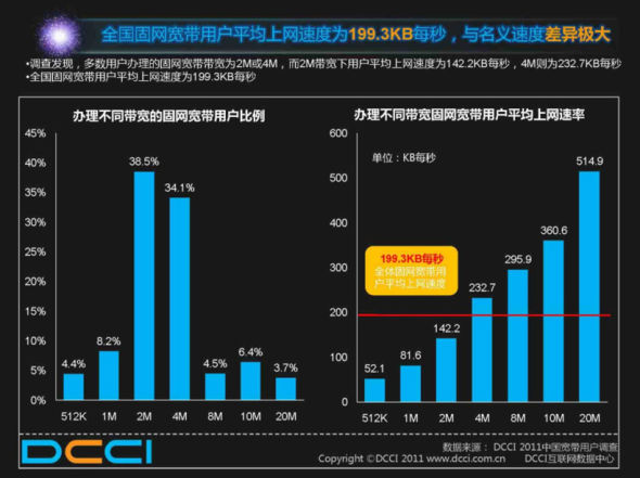 最令人惊讶的是,20M宽带的平均上网速率为514.9 KB/s,与理论速率2.56M/s相差五倍之多。
