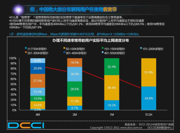 假宽带全民喊打其实已经持续了一年多,早在去年,中国互联网调查组织机构和数据平台DCCI互联网数据中心发布《中国宽带用户调查》报告,就称绝大部分互联网用户用的都是“假宽带”。