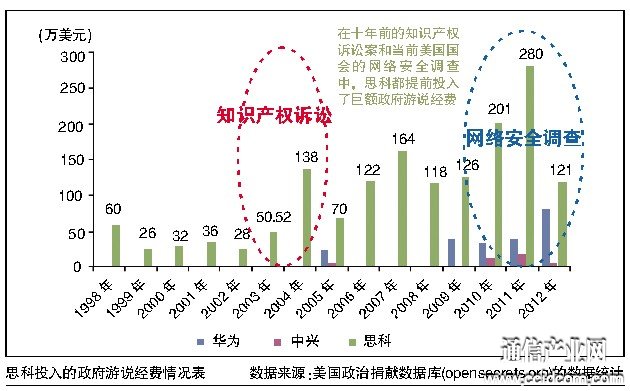 华为是否构成国家安全威胁的证据,目前并没有被公开,只有美国政府机构的少数几个人才能看到。虽然华为并没有被正式指控,但美国立法机构却已经警告企业,停止和华为、中兴做生意。这个结果,足以让思科等企业获得市场拓展的大好机会。在美国国会的报告发布后,思科的营销活动急剧升温。作为“中华门”事件的最大受益者,尽管思科曾在事后发表声明表示“与此事无关”,但伴随其每年高额政府游说资金的曝光,这份声明似乎不攻自破。