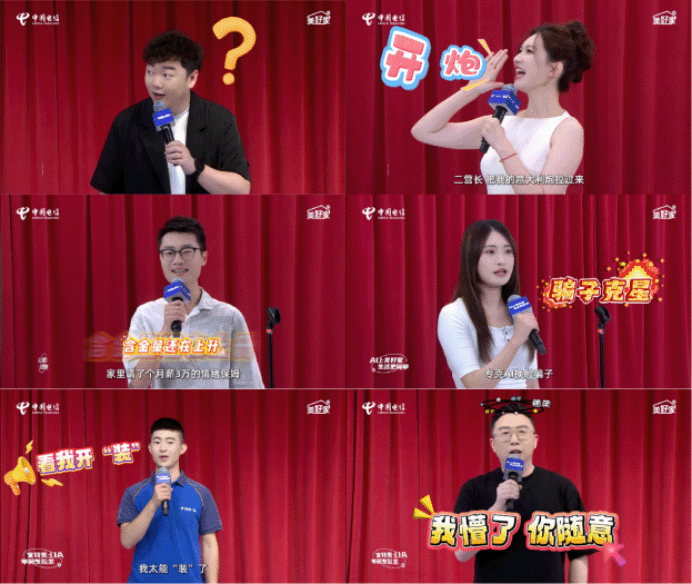 本次发布会打破常规,以脱口秀的形式,由《奇葩说》辩手雷哥带领电信AI智慧中屏推荐官张立人、AI大屏推荐官杰妮、AI小屏推荐官楼佳玲,一起演绎如何玩转AI大中小屏之间的多屏联动及“AI终端+AI应用+AI智能体”的家庭智能化体系。同时,中国广告主协会副会长张力、中国电信智慧家庭工程师郎跃峰登台,也以幽默诙谐的语言讲述这场“智慧家庭场景”变革的意义与影响,阐述中国电信作为“AI国家队”对AI普惠化服务做出的深远布局,将那些困扰人们许久的网络与智能设备问题,变成“一句话的事儿”。