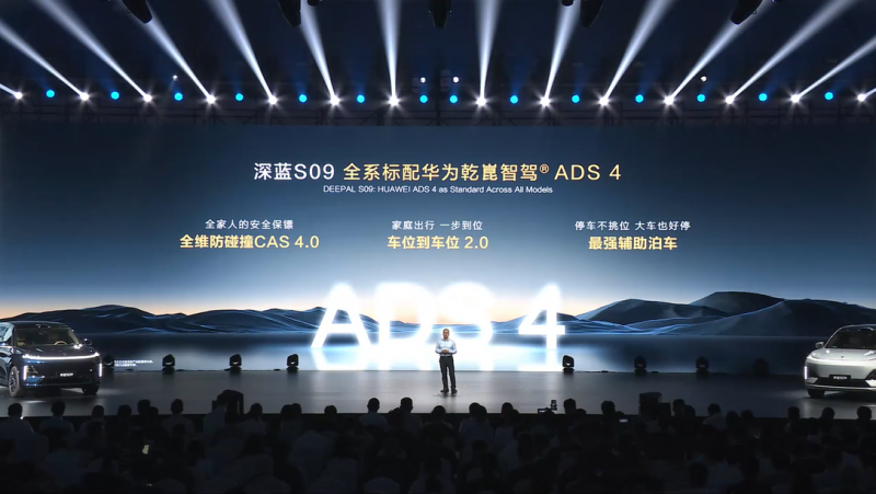 本次发布会上,深蓝汽车还推出了全新深蓝S09,搭载全新升级的华为乾崑智驾ADS 4,全维防碰撞系统CAS 4.0通过“全时速、全目标、全方向、全天候、全场景”五维覆盖,从容应对“鬼探头”、路面异物、误踩加速踏板等极端场景,全方位守护用户的用车安全。车位到车位P2P 2.0行业首发巡泊一体,将外部地图、园区地图和地库道路三张图合一,界面不切换,体验更丝滑,新增高速ETC通行,做到了将城市、高速、泊车三大场景彻底打通,真正实现了“车位到车位”的无缝衔接,将出行驾驶从耗费精力的任务转变为更轻松、自由地享受。