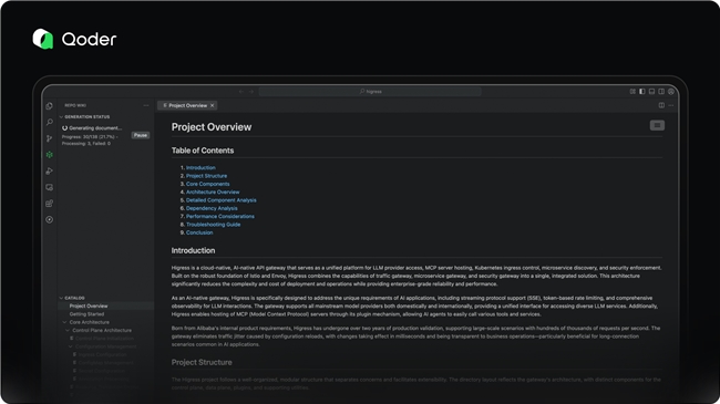 除了降价和支持支付宝付款外,Qoder 在近期也升级了核心能力。以 Repo Wiki 为例,该功能一经上线就受到开发者的热烈响应。Repo Wiki 能基于代码自动为项目生成结构化的文档知识库,让隐藏在代码中的经验性知识,变为团队可共享的显性知识,目前 Repo Wiki 支持共享、编辑和导出,方便团队把经验沉淀为可复用的工程资产。