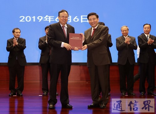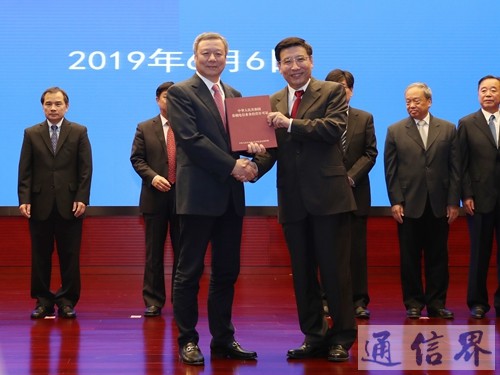 工业和信息化部部长苗圩同志出席颁证会并颁发许可证。工业和信息化部党组成员、总工程师张峰同志主持会议,国家发展改革委相关负责同志及中国电信、中国移动、中国联通、中国广电、中国铁塔主要负责同志出席会议。