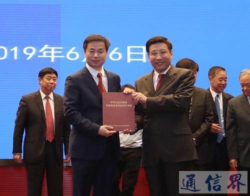 依中国电信集团有限公司、中国移动通信集团有限公司、中国联合网络通信集团有限公司、中国广播电视网络有限公司申请,工业和信息化部经履行法定程序,于2019年6月6日向四家企业颁发了基础电信业务经营许可证,批准四家企业经营“第五代数字蜂窝移动通信业务”。