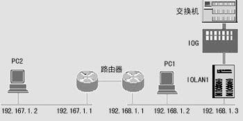 我按图3所示设计了一个方案,希望能实现在同网段上的和不同网段上的计算机都能控制交换机。按图上所示配置好IOLAN+的IP地址(192.168.1.3)、PC1机的IP地址(192.168.1.2)和PC2机的IP地址(192.167.1.2)。PC1机和通信服务器同在192.168.1.0网段,而PC2机在另一个网段。