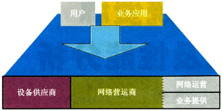 在价值链中,实现了3G网络的运营商、业务提供商和业务使用者(用户)的完全分离。