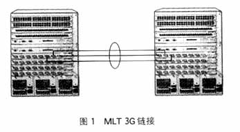 multilink trunk(MLT)技术是在两台交换机之间提供2条以上链接,在连接处于正常情况下,数据可分别利用多条链路进行数据传送,多条连接之间采用负载均担技术(图1)。这样也就成倍地扩展了交换机之间的连接带宽,扩展了骨干节点之间的连接带宽。当其中一条连接出现故障时,交换机将自动检测故障并使用没有故障的其他连接传送数据,以保障网络交换机之间的正常连接。