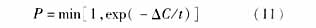 其中ΔC为旧个体与新个体的目标函数值之差。