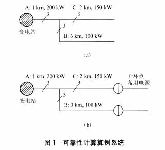 2供电可靠性及停电损失费用工程计算方法 在配电系统可靠性分析中,最重要的因素是故障率期望值和停电时间期望值及不同网络结构下给各用户造成的少供电力总和。这些因素决定于运行和检修策略,网络结构、网络元件的组合方式以及元件的可靠性。在网络结构、网络元件的组合方式以及网络元件不变的基础上,配电系统自动化的目的就是通过优化系统的运行、检修和故障排除方式,从而提高系统的可靠性。配电系统主要分为两种结线形式,辐射形和环网形。由于我国在环网系统中采用开环运行,因此,也可作为辐射形系统考虑。 定义给定元件i的平均故障率为λi,平均停电时间为γi;年故障持续时间为 其中假设各个元件的故障是相对独立的。对于给定负荷j的平均停电率或每年的停电次数由下式给出: 其中,λi是元件i每年故障率,I是造成给定负荷点j供电中断所有故障元件的集合。 年停电时间的期望值,由下式给出: 其中tij是由元件i的故障在给定负荷点j引起的供电中断时间。 平均停电持续时间由下式给出: 电力系统中所发生的各种停电可能引起的“少供电量”由下式给出: 其中Pj是负荷点j停电引起的少供电力。 少供电量的费用由下式给出: 其中aj(tij)和bj(tij)是当停电时间为tij时 ,对负荷点j少供电力和电量的单位费用值。其单位为元/kW和元/kWh[2]。