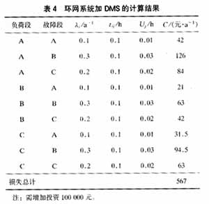 4结论 从算例中知道,增加电缆故障指示器是一个投资少而效果显著的方法,应该推广应用。同时,DMS系统的规划必须与区域内经济发展水平相适应。DMS的实施,不仅要求有较好的一次系统设备作为基础,同时要求有较大的一次投资。只有当停电费用损失系数达到一个较高的数值,如b=40元/kWh或以上时,即意味着该区域有很高的生产力水平、生活水平或商业价值时,投资DMS系统才有适当的投资回报。对照国内的实际情况,就是应选择在某些高、新技术开发区,主要的工业区或商业区及高级住宅区域等先进行DMS项目的实施。
