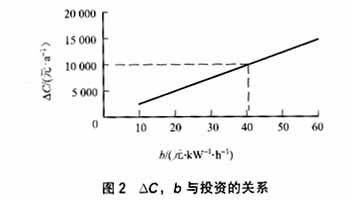 假设所增加的投资在10年内收回,则每年需有10 000元回报。以b为横坐标,ΔC为纵坐标得图2。