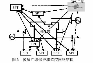 进一步发展综合的多层结构,将相位测量、保护和EMS组合在一起,形成广域保护和监控网络。如图3所示,由几个SPT组成地区保护中心(Local Protection Center,LPC),而系统保护中心(System Protection Center,SPC)则是LPC的协调机构。这种三层结构的设计可分阶段实施,第一阶段的目标是开发监控能力(如广域测量系统WAMS),主要目的是改进事故后的分析运行员的信息和状态估计,下一部再由WAMS发展为保护和控制系统。也可有另一种“平结构” ,SPT用环形结构与其他SPT直接通信。这样的结构很容易用多智能体系统的结构来实现。