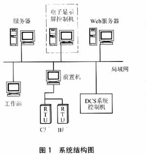 这套实时监控系统采用Windows 98/NT操作系统环境下的浏览器服务器(browser/server)结构,各节点物理层以10 Mbps/100Mbps网缆通过10Mbps/100Mbps集线器(hub)-交换器(switch)星形以太网方式互联;传输层协议为TCP/IP方式,应用层协议为SCADA系统数据全集交换协议(SDFSSP)方式。具体的系统结构如图1。