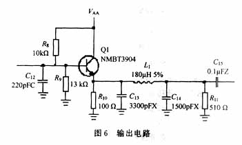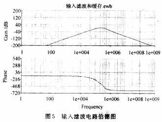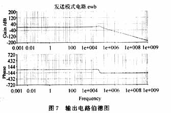 从P300输出的信号幅度小、驱动能力弱而且还有高次谐波分量,因此在输出端必须经过滤波和放大。图6和图7是输出滤波和放大电路及其伯德图。
