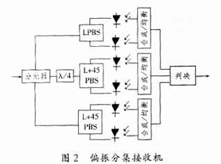 (2) 利用偏振分集接收机.其原理是不同的偏振态具有不同的噪声特性,因而用多个接收机可以大大消除噪声的影响[2].