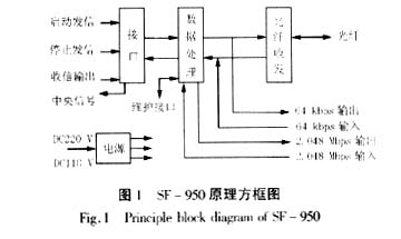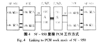SF-950复接PCM工作方式如图4所示,SF-950提供64 kbps(G703.1)数据给PCM,通过PCM与光端机进行传输。