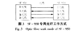 SF-950专用光纤通道应用方式如图3所示,两台SF-950之间直接用光缆连接起来作为通道,可以采用单路光纤通道或双路自动切换双光纤通道。