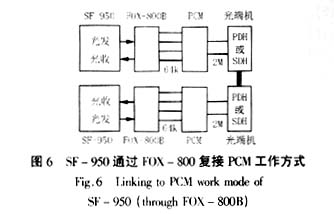 SF-950可以直接采取与之配套的FOX-800BFOX-800B光电转换器联合使用,如图6所示。采用此种方式,可将SF-950放在保护室,FOX-800B放于通信室,FOX-800B复接PCM传输。