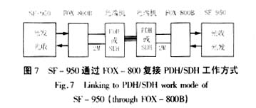 SF-950可以直接采取与之配套的FOX-800B光电转换器联合使用,如图7所示。采用此种方式,可将SF-950放在保护室,FOX-800B放于通信室, FOX-800B复接SDH/PDH传输。