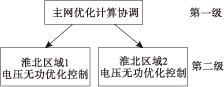 根据淮北地区电网220kV主网环网运行、110kV网络辐射状运行特点,电压无功优化采取分层分区控制模式,两层相互协调。第二级为全网协调,第一级为区域电压无功集中控制系统。系统的控制模式如图2所示。