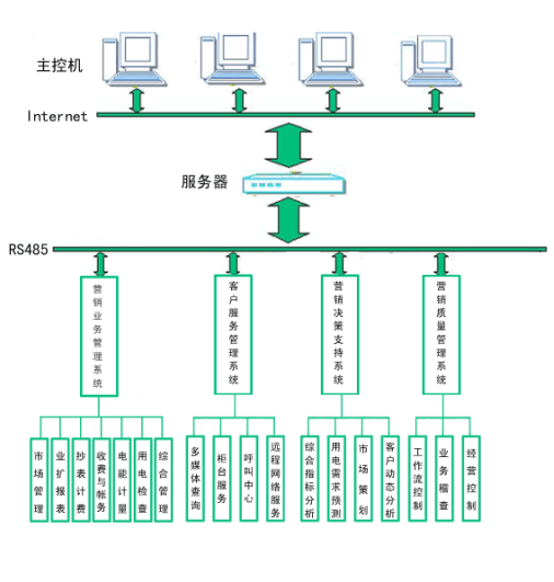 根据电力企业加强用户服务、强化工作监督、提高决策水平的要求,形成了一个覆盖电力营销3个业务层次(客户服务、营销业务处理、营销管理决策支持)和工作质量监督管理的完整的电力管理信息系统。