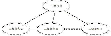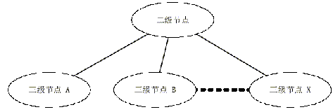 汇接层是网络的第二层,主要由二级节点组成,如图6所示。一级节点与二级节点之间建立星形连接同时根据网络高可靠性原则和信息传输量的需求,适当建立一部分二级节点之间的直接互联。它主要负责部分二级节点之间和各三级节点到核心层的数据转发。