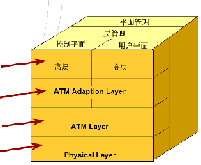 国际电联标准化组织ITU-T在建议I.321中给出了ATM网的参考模型(如图2所示)。基于ATM的异步传输承载的各种通信业务功能,ATM可分为四层,分别为物理层(Physicallayer)、ATM层(ATMlayer)、ATM适配层(ATMAdaptation layer,简称AAL层)和高层。其中高层又进一步划分为用户平面和控制平面,对于上述四个层的管理功能,也用一个平面表示,即管理平面。