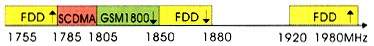 2002年10月我国对3G系统频率使用进行了规划,如图1所示,其中SCDMA系统的工作频段为1785MHz~1805MHz,GSM1800系统的主要工作频段为1805MHz~1850MHz。根据此规划方案,SCDMA系统和GSM1800系统可能在多个频点处邻频共存。由于发射机和接收机滤波器的不完善性,共存的两个系统会产生相互干扰,造成链路质量下降和系统容量降低。