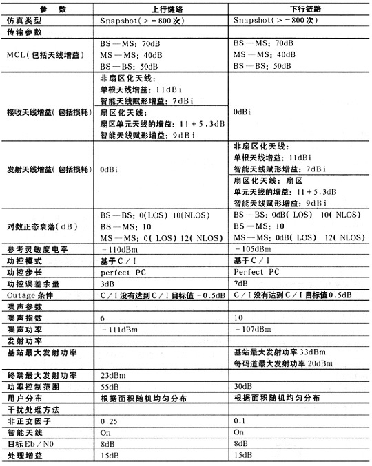 SCDMA和GSM系统上、下行均采用5%中断概率准则,即有5%的用户不能达到目标信噪比。