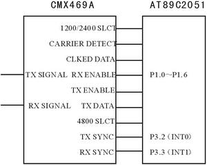 CMX469A和单片机的外部接口电路比较简单,可通过单片机AT89C2051方便设置CMX469A的各功能引脚。CMX469A与单片机AT89C2051的接口关系如图1所示。