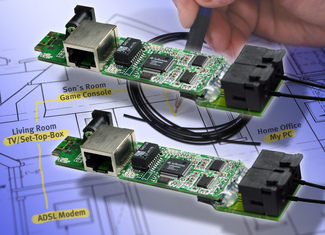 英飞凌的POF收发器具创新且易于使用的光纤耦合技术之优势,可使用一简单的工具来切割光纤,并且不用连接器即可插至一个插座。由于POF收发器采用的是标准以太网络(Ethernet)接口,因此一个纯粹的随插即用装置不需要任何特殊架构。POF以专用的界面来提供IP影像和三重(triple-play) 服务。相较之下,不同于目前的分享式架构。POF 同时是一个理想的家庭基础架构,因为在使用时不会产生电磁干扰(EMI),亦不会受其影响,又因视讯在传送时对EMI极度敏感,而POF的特点就是确保提供稳定及画面无抖动的视频服务。