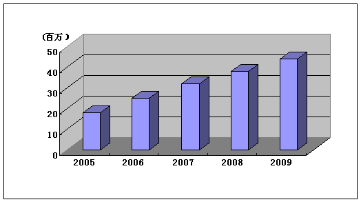 2006年亚洲的FTTX建设将会有较大发展,业务收入将大大增加,特别是中国和澳大利亚增长潜力巨大。今后几年采用FTTX技术的宽带业务提供者如果加强与内容提供商和增值业务提供者合作,会获得较好的收入。图2和图3分别为对亚太地区FTTX用户数和业务收入的预测。