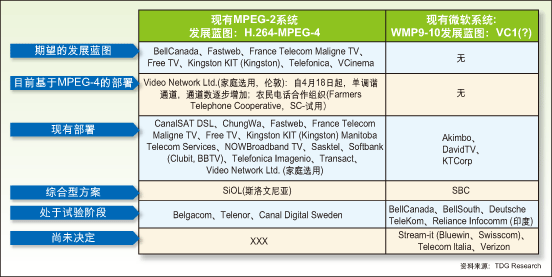 “关于IPTV有两个错误的观点,”宽带基础设施供应商Harmonic公司副总裁Bradley Graham认为,“其中第一个错误观点就是IPTV意味着不需要使用先进的编解码器;第二个错误观点就是IPTV不是微软公司的IPTV平台的同义词。”许多IPTV部署目前还是采用MPEG-2,并未着手采用微软的TV IPTV Edition平台。