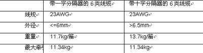 ·由于所采用的十字骨架,是硬体结构,刚性大,增加了线缆的外形尺寸,和弯曲半径,采用这种线缆必须对基于五类或超五类系统的原有线槽尺寸和路由设计进行改动,空间需求增加了20%到40%,因此增加了施工难度和成本。