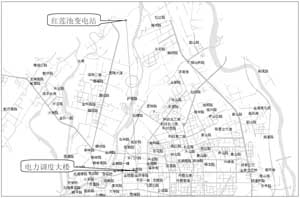 根据以上四个点的测试结果进行综合分析,初步确定了干扰源位于金新路与金砂路交界处。该处附近的电力调度大楼上架设有微波天线,天线的轴向正好对准金新北路、胶廊路一带和歧山陇头一带,因此初步怀疑是该电力调度大楼的微波信号发射造成对PHS基站的干扰。经核实,电力调度大楼上所用的微波系统工作频率为1905.5 MHz/1961.5 MHz,该微波站与红莲池变电站的微波链路如图2所示,也正是该微波链路周围的PHS基站,受到的干扰最严重。关闭该微波设备后,干扰现象消失了。