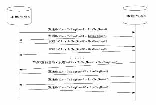 只有当节点发送或接收到ConfigAck消息,控制通道才进入激活(UP)状态,此时通过周期性发送HELLO消息来实时维护通道的连通性;其中,HELLO消息的间隔时间(HelloInterval)和死亡间隔时间(HelloDeadInterval)在进行初始化的Config消息中配置。HELLO消息包括两个重要的序列号:发送序列号(TxSeqNum)其初始值为1,随后每发送一个HELLO消息加1;接收序列号(RcvSeqNum)启动或重启动时其值为0;(值得注意的是当一端节点HELLO消息重新启动时,其发送序列号回到初始值1,接收序列号回到初始值0,而另一端节点在收到此消息时,会继续累加记数,这时发送序列号和接收序列号将不是相差1;)HELLO消息的处理流程如图1所示。