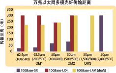 图:多模光纤的种类不同,万兆以太网PMD的性能也随之不同