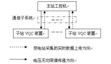 通信子系统实现主站系统与子站系统VQC控制程序之间的数据通信,主站系统通过通信子系统与各变电站的电压无功实时控制子系统联系,进行数据传递和控制。