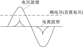 交流整流直流用电设备的谐波产生的原因是由于整流设备有一个阀电压,在小于阀电压时,电流为零(如图图所示)。这类用电设备为了提供平稳的直流电源,在整流设备中加入了储能元件(滤波电容和滤波电感),从而使阀电压提高,加激了谐波的产生量。为了控制直流用电设备的电压和电流,在整流设备中应用了可控硅,这使得该类设备的谐波污染更严重,而且谐波的次数比较低。