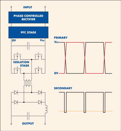 对热性能的严格要求可以通过在转换器内尽量减少开关损耗得以缓解。全桥式转换器所使用的模块化方法对损耗的产生有重大影响。对这一问题的了解促进了中间总线DC/DC转换器设计的变化,但是直到现在,这些变化还未被应用于AC/DC转换阶段。