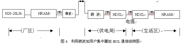 利用微波加用户集中器再加HDSL方式组网,框图见图4所示。