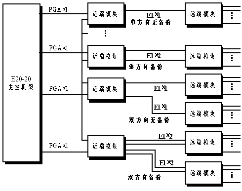 此种方案的优点是不需要购置交换机设备,但需要购置远端模块,其原理是将厂区交换机用户号码进行了长距离延伸,生活区电话号码与厂区可以同为一个字段开头,在E1链路中断后,系统具有小交换机的功能,可以实现内部呼叫,并保证数字用户的基本功能可用,降低了系统建设成本,同时便于调度系统的整网的管理,维护也较为方便。