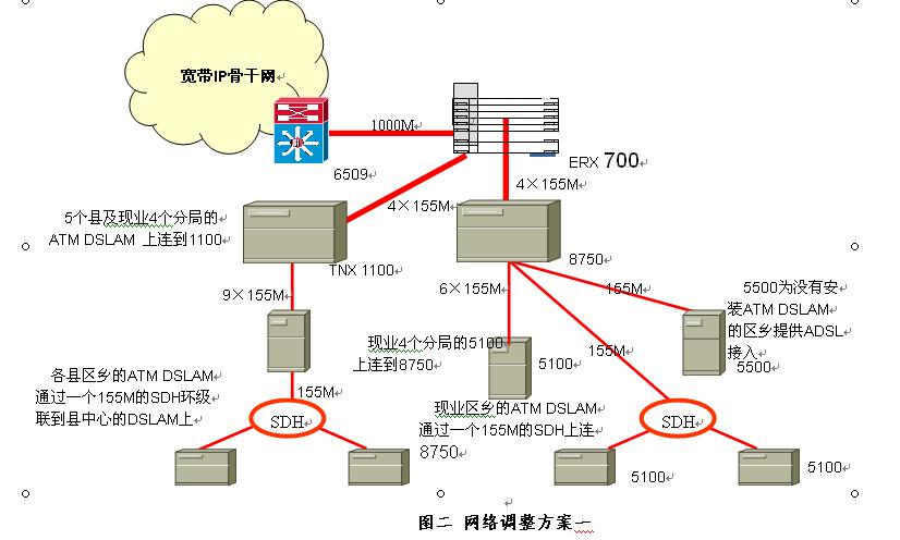 1. 调整现有ATM网连接IP网的组网结构,消除交换机之间的中继瓶颈。