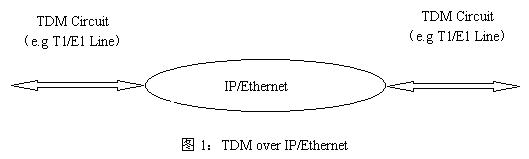 所谓TDM over Ethernet技术,就是通过Ethernet透明的传送TDM业务(比如话音、图像和数据业务)。 其基本原理就是将TDM数据不做任何翻译和解释,封装为以太网数据包,然后通过基于分组交换的以太网传送到目的端,目的端需要将收到的数据包打开并恢复出原始的TDM数据流。对于用户而言,不需要考虑中间的传输媒介,相当于为用户提供了一条透明的TDM通道。正是基于这个原因,分组网络上的电路仿真又称之为通道仿真。