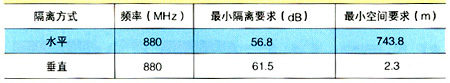当考虑GSM系统接收端加装滤波器时,天线隔离要求见表3。