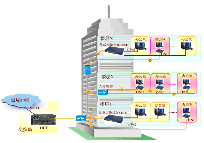 3、EPON在电力集团大楼综合布线中的应用