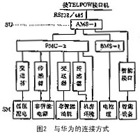 ——本地网中操作终端、服务器、接口机的组网方式同TELCOM系统一样,最终形成广域网。广域网的拓扑结构没有具体要求,只是要求它们之间的通信方式符合TCP/IP标准。这里重点叙述接口机到监控设备的连接方式。安徽省电信管理局选定的采集设备是中达和华为两家公司的产品。下面仅介绍它们与接口机的连接方式,如图1、2所示。