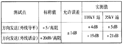 进行了以上测试工作后,我们对该线路通信设备进行了全线开通工作,对两端电力线载波机进行了整机调测,实测数据如下: